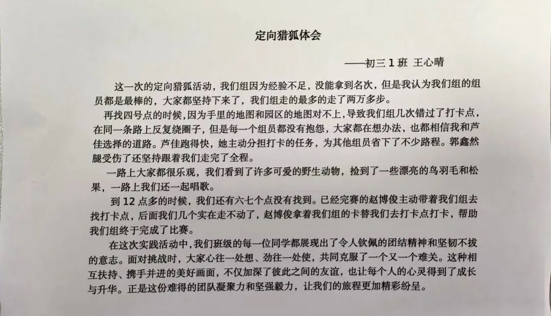 通过定向猎狐主题教育实践活动,培养学生遵守规则的意识以及挑战自我、突破自我的能力,使其在身心受到压力时能迅速做出果断决定的反应能力。让学生学会使用军用地图、指北针、测向仪等,在大自然中实践多学科目标的融合,提高学习、创新、合作、思考的能力,培养学生的自立、自强、自信、自理等综合素养。