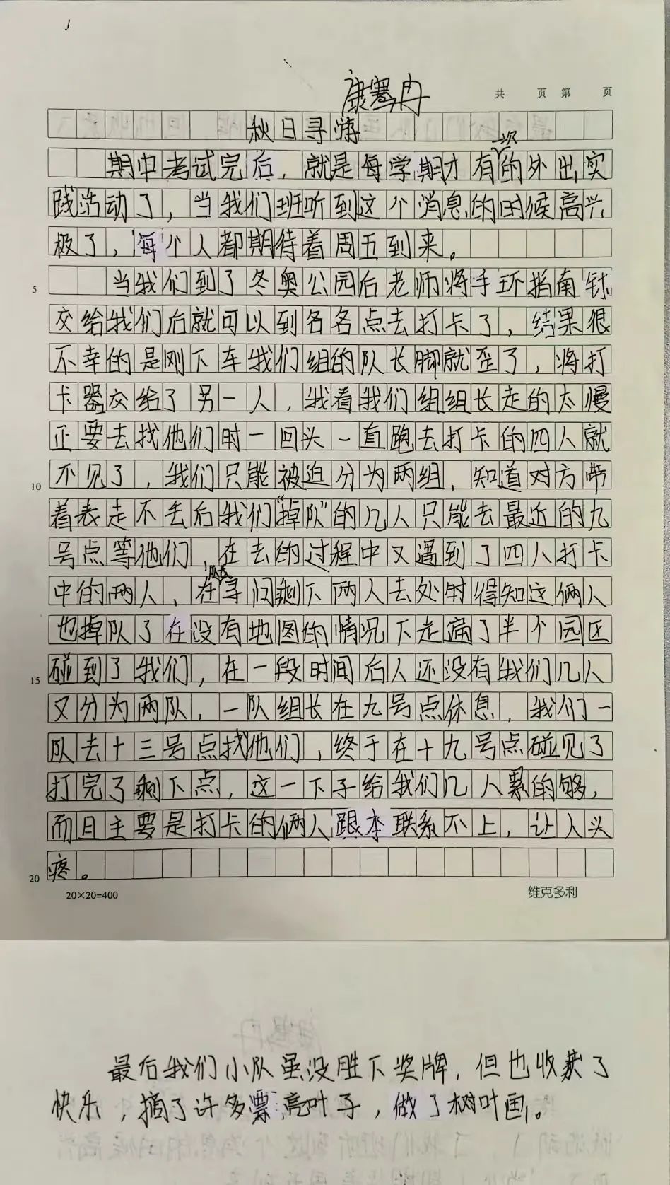 初中冬奥公园社会实践活动