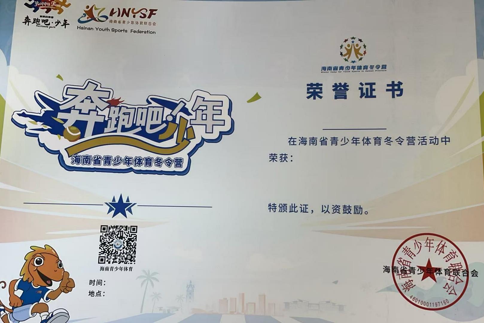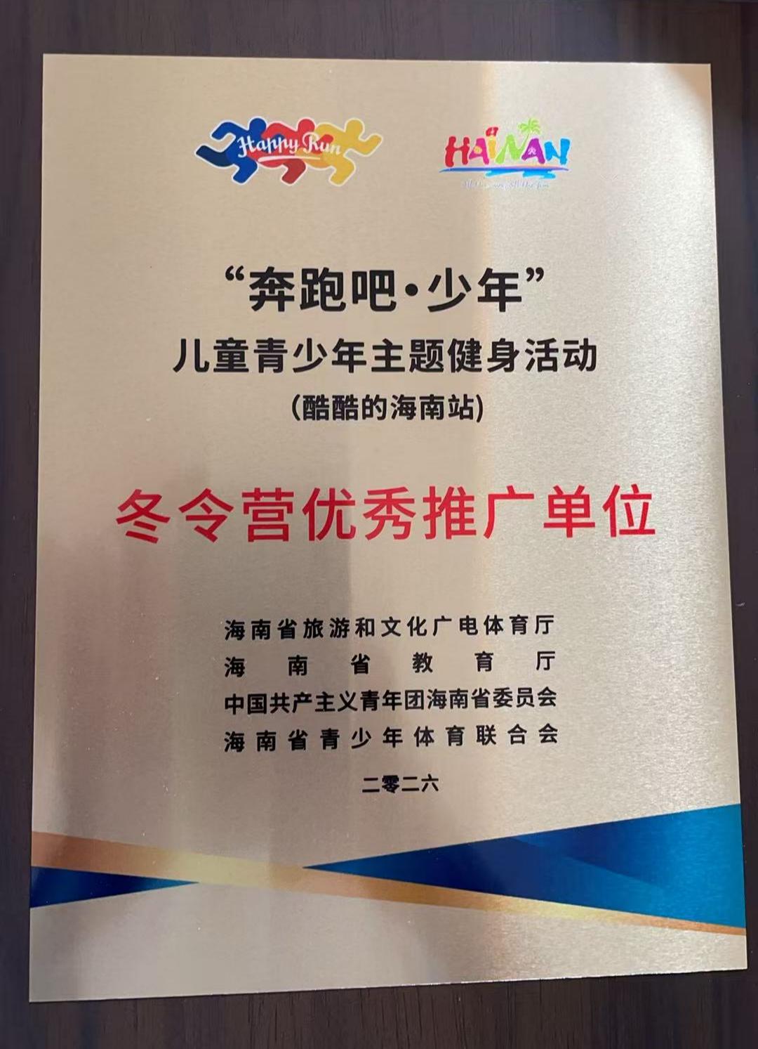 海南定向文化发展有限公司荣获“奔跑吧·少年”冬令营优秀推广单位!