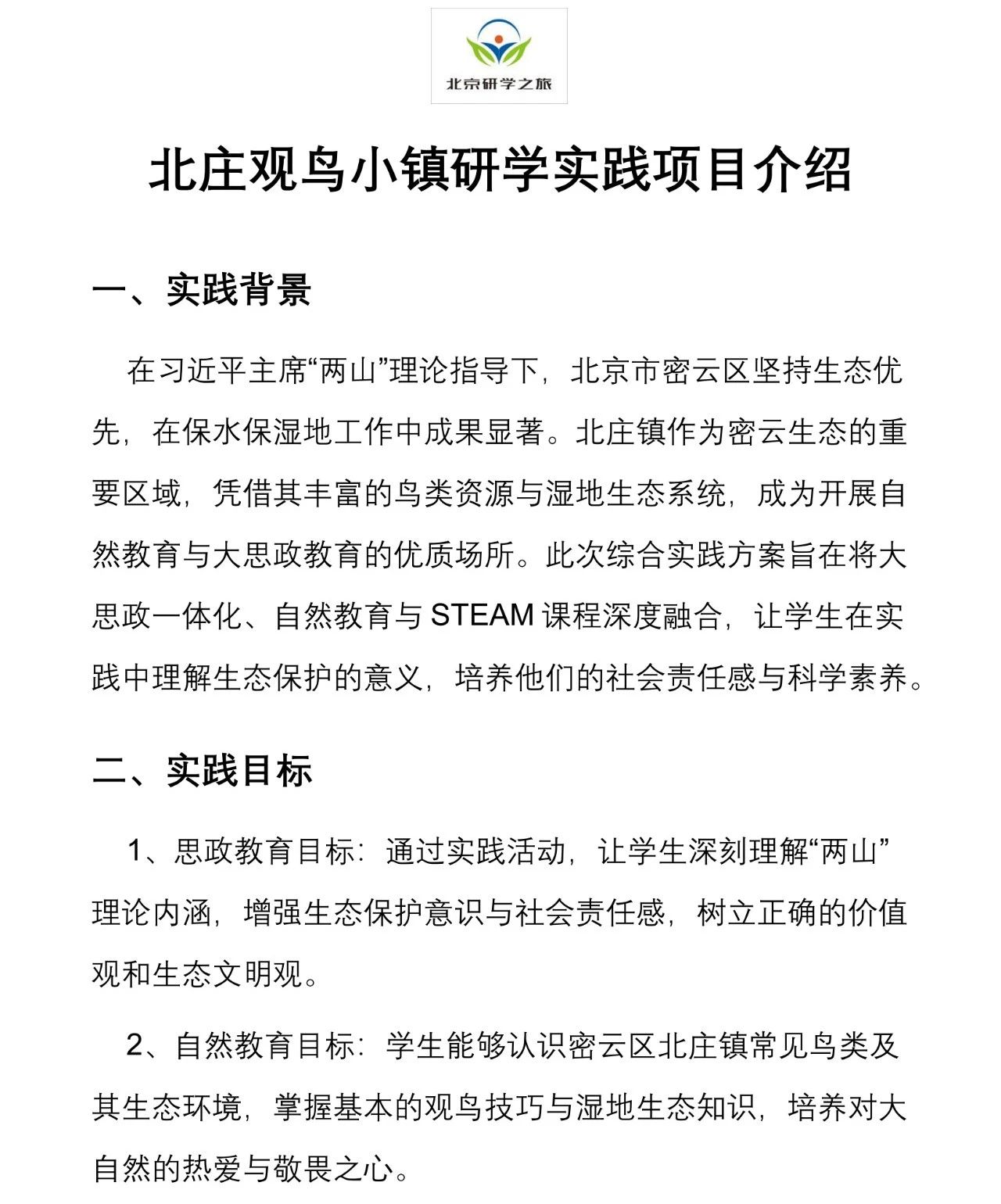 观鸟小镇实践研学项目(北庄北京市观鸟基地)