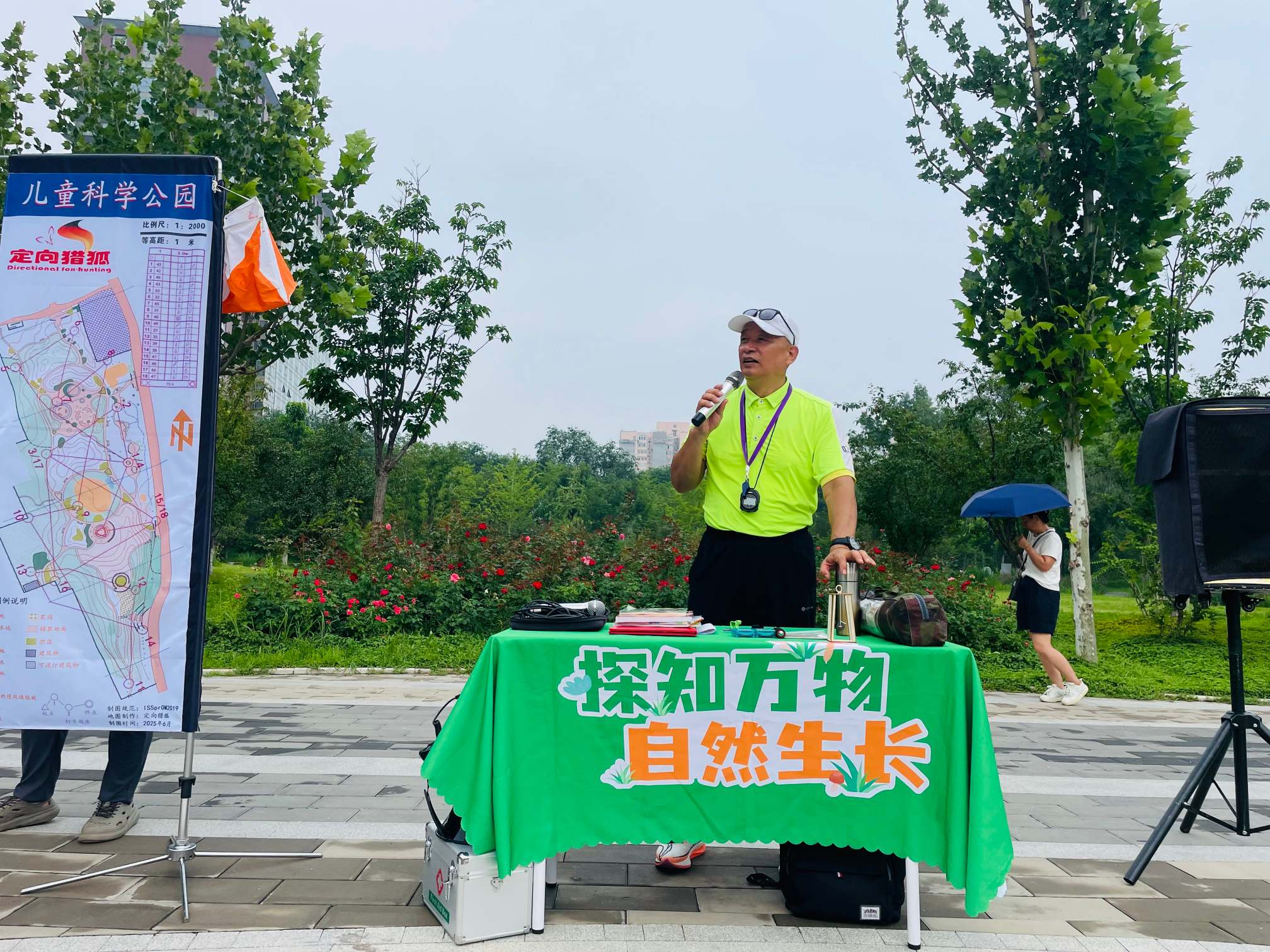 活动当天,现场气氛热烈非凡。一大早,参与活动的家庭就满怀期待地来到现场签到、领取装备。孩子们兴奋地蹦蹦跳跳,家长们也被孩子的情绪感染,脸上洋溢着笑容。随着丰台区定向运动协会会长孔繁金热情洋溢地开场,详细介绍活动规则和注意事项,首届 “香樟杯” 亲子定向越野活动正式拉开帷幕。