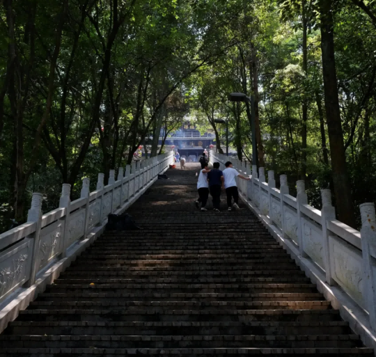白鹤山整个环线走一遍约4公里,全程石板路,有古林树荫遮阳,差不多2个小时就能走到山顶,从山顶的观景台望出去非常开阔。